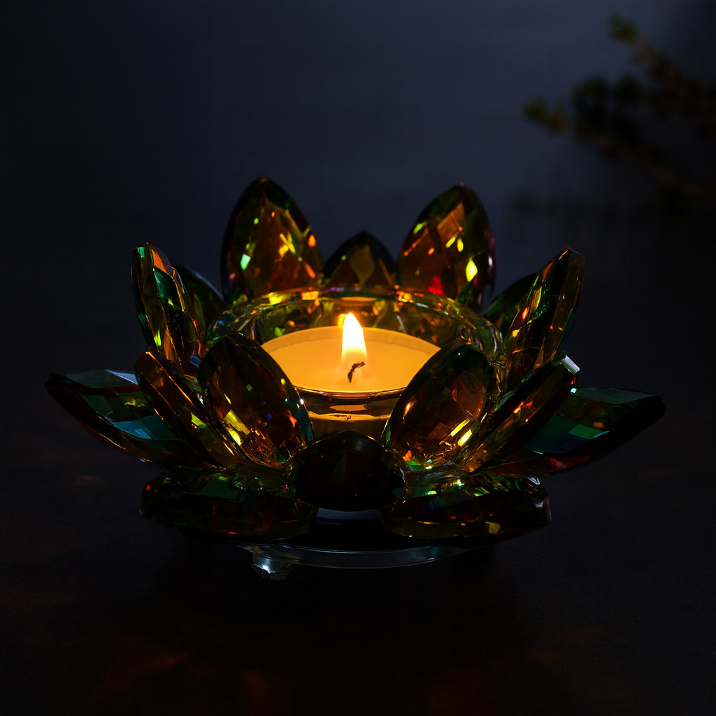 Krištáľový lotos pôsobí veľmi elegantne, je dobre vybrúsené a na svetlo krásne lomí farby.