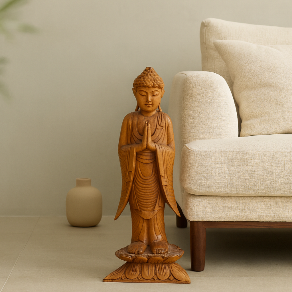 Drevo je veľmi dobre spracované. Ručná rezba je čistá, proporcie sedí a výraz tváre má hĺbku. Je vidieť, že rezbári v Indonézii majú roky skúseností.